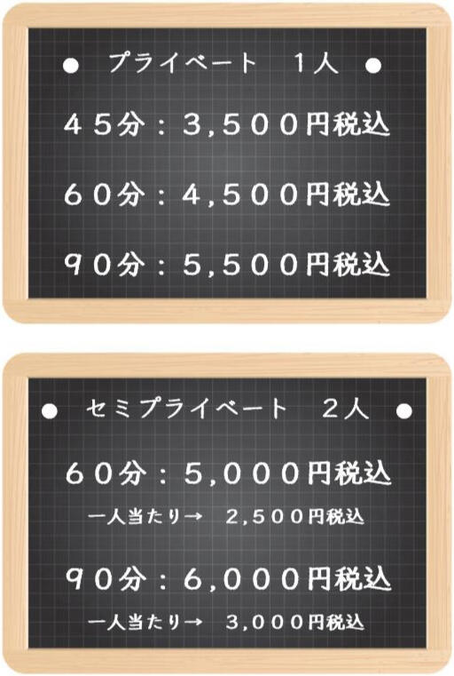 1日前までにお知らせ願います。・当日キャンセルは1レッスン分頂く